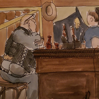 Pub sketching is not usually my thing, but Scottish Dave's Pub is right next door to the Clinton Art Gallery, the home of the Shoreline Sketchers, so a night sketching at the pub seemed a natural thing to do.